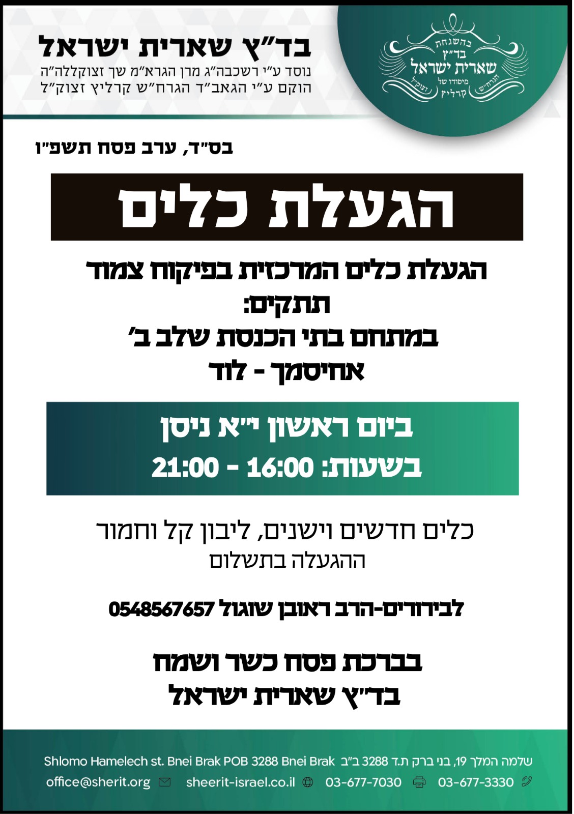 הגעלת כלים מחר יום ראשון