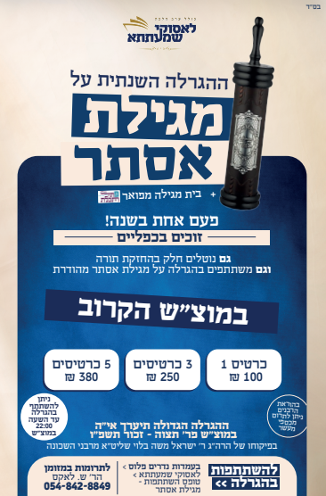 ציטוט מ משפחת לאקס ב פברואר 24, 2026, 10:53 pmהכרטיסים אוזלים! ההגרלה על מגילת אסתר מהודרת במוצ"ש