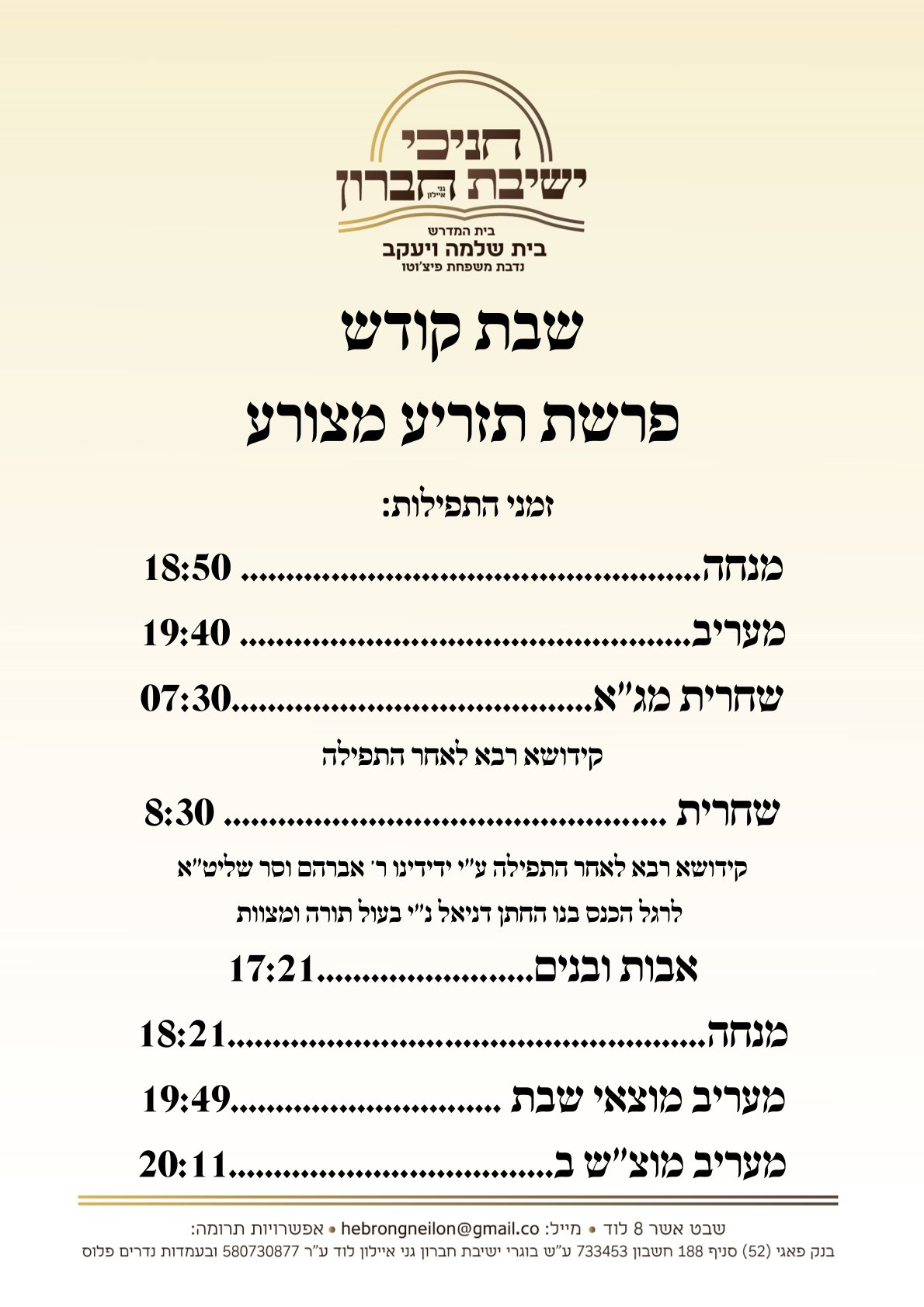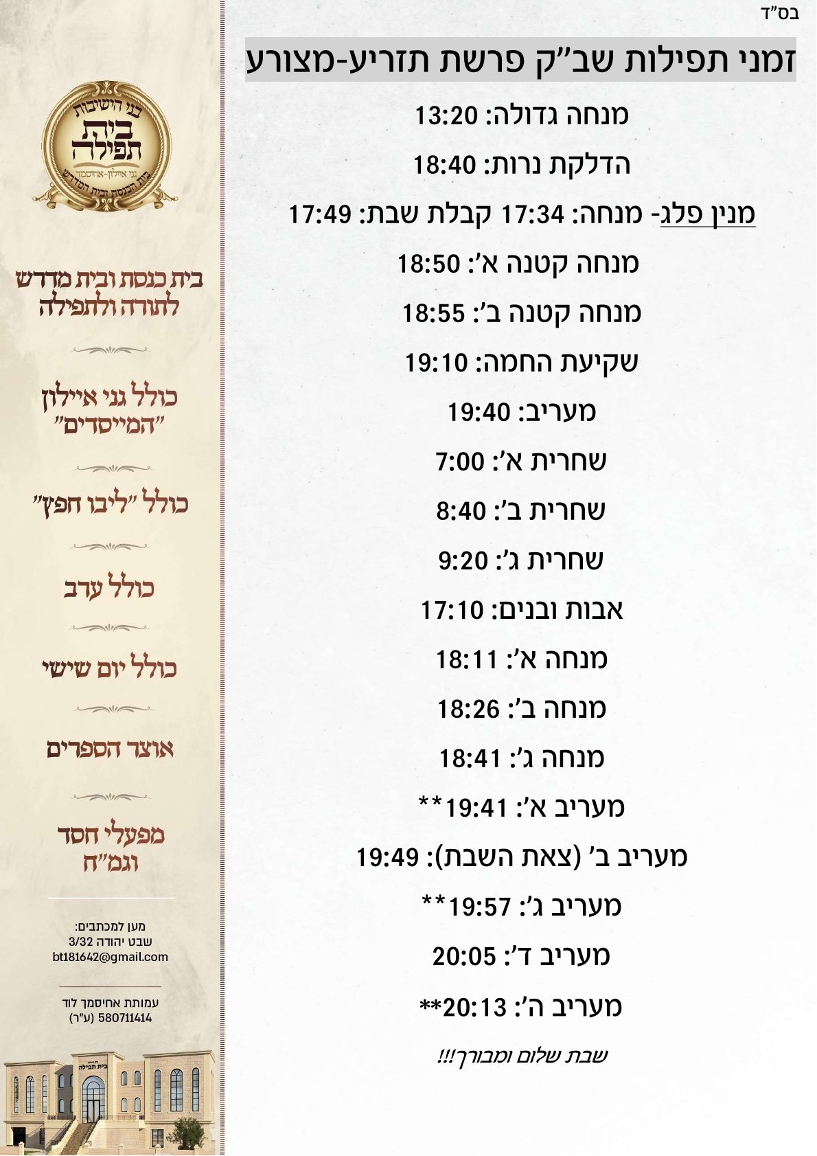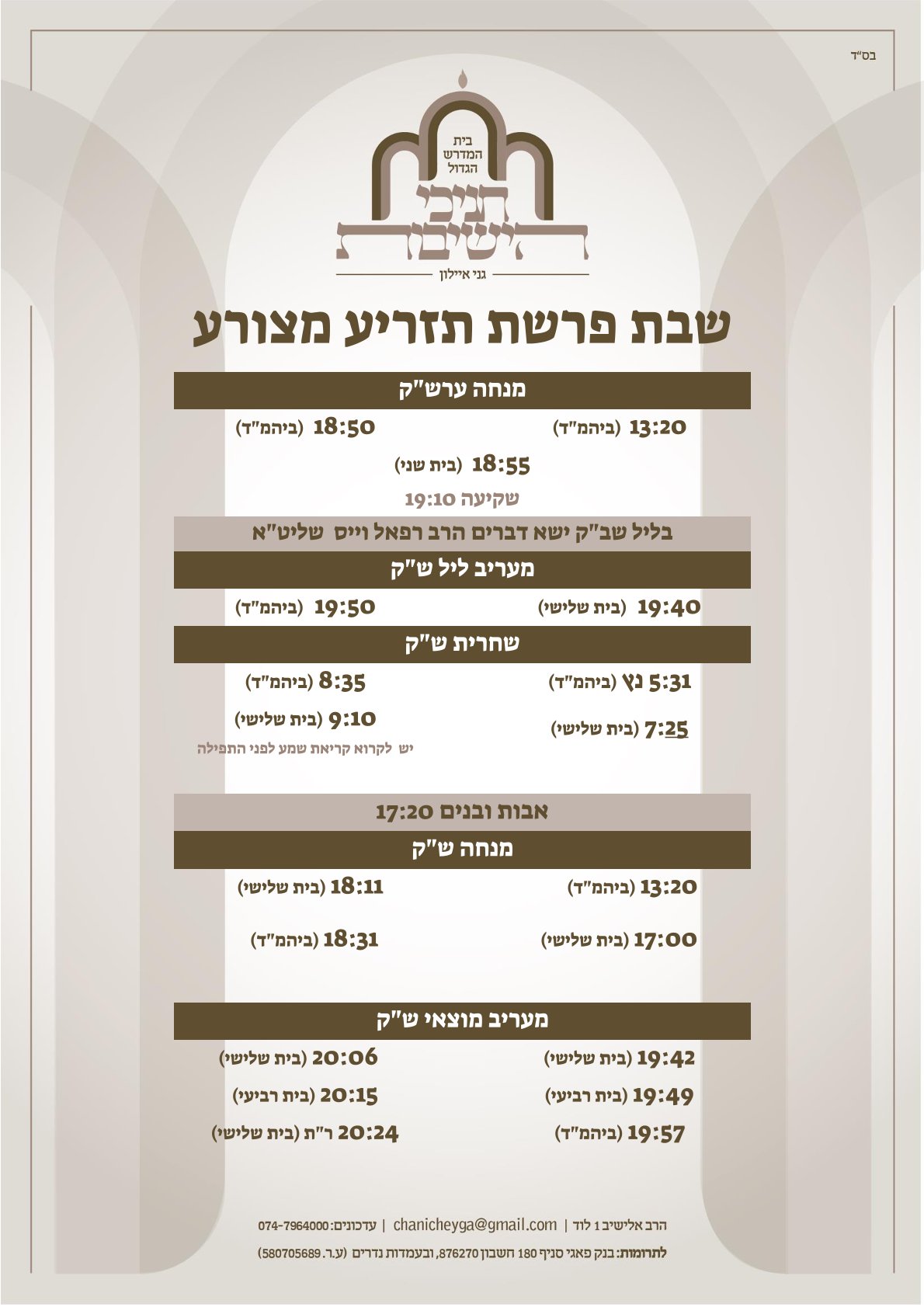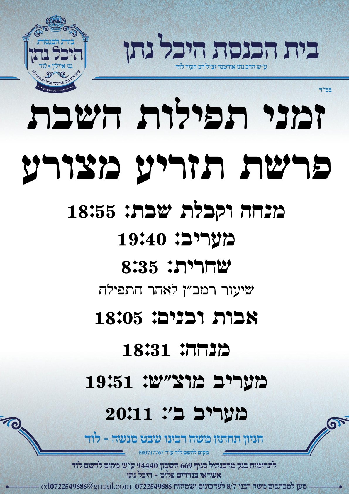 מצורף זמני התפילות לשבת,של בתי הכנסת בשכונה, בתי כנסת שלא מופיעים, יכולים לשלוח לנו ונעלה.(צילום אתר עירית לוד)