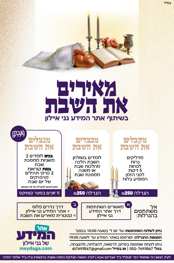 א. מקבלים שבת 5 דק' לפני הזמן בלוח- ונכנסים להגרלה על 250 ש"ח